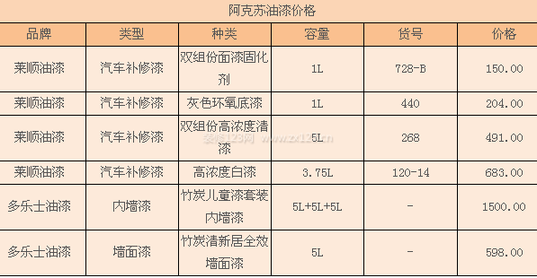 2阿克苏油漆价格