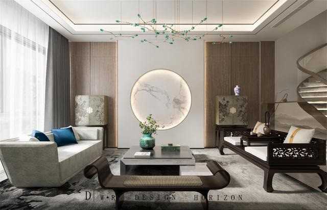 新中式风格在设计上延续了明清时期家居配饰理念,提炼了其中经典元素并加以简化和丰富,在家具形态上更加简洁清秀,同时又打破了传统中式空间布局中等级、尊卑等文化思想,空间配色上也更为轻松自然。