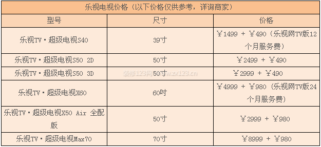 2乐视电视价格